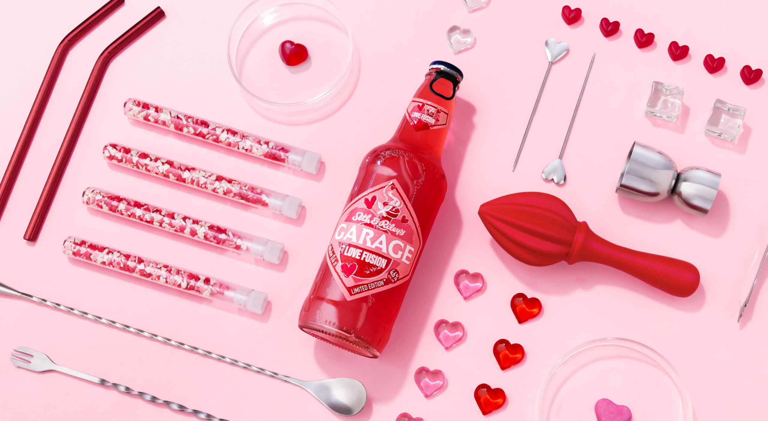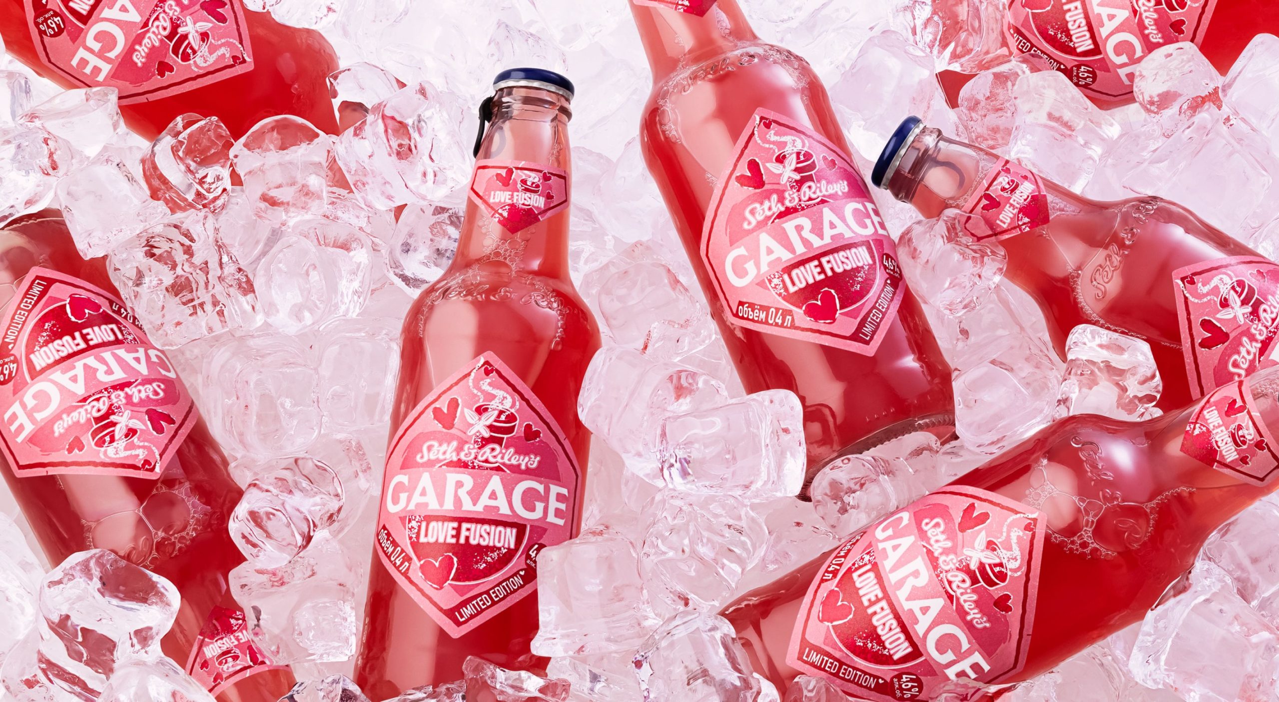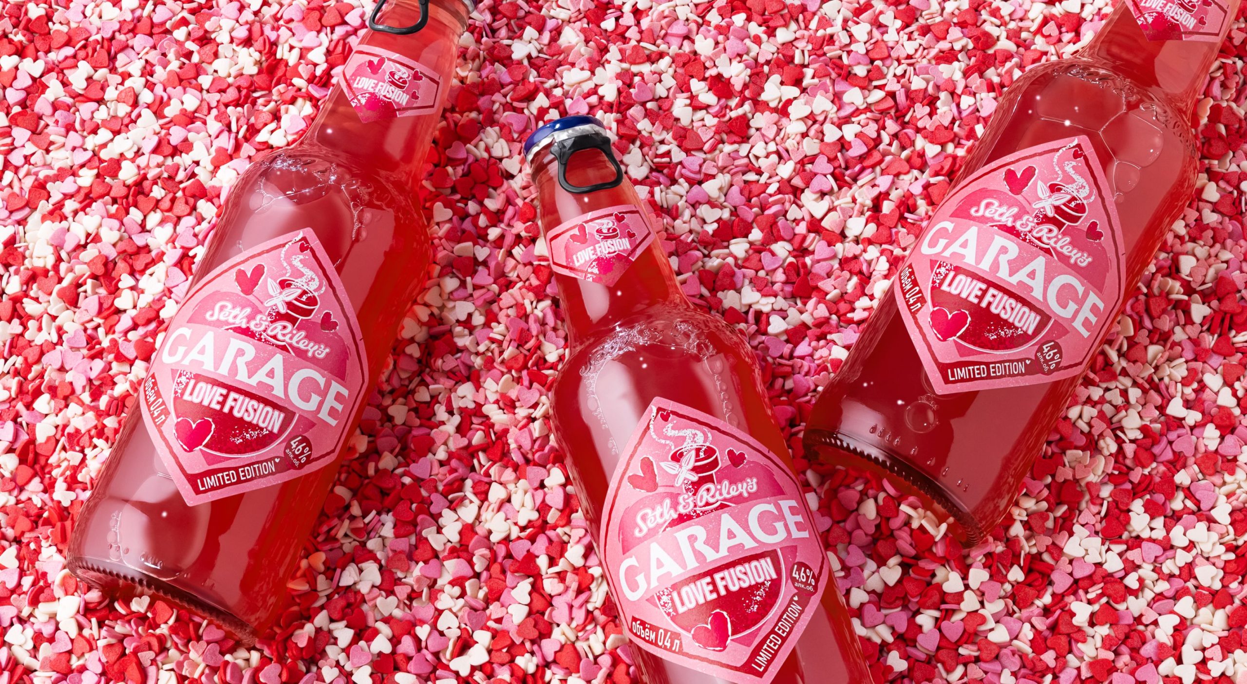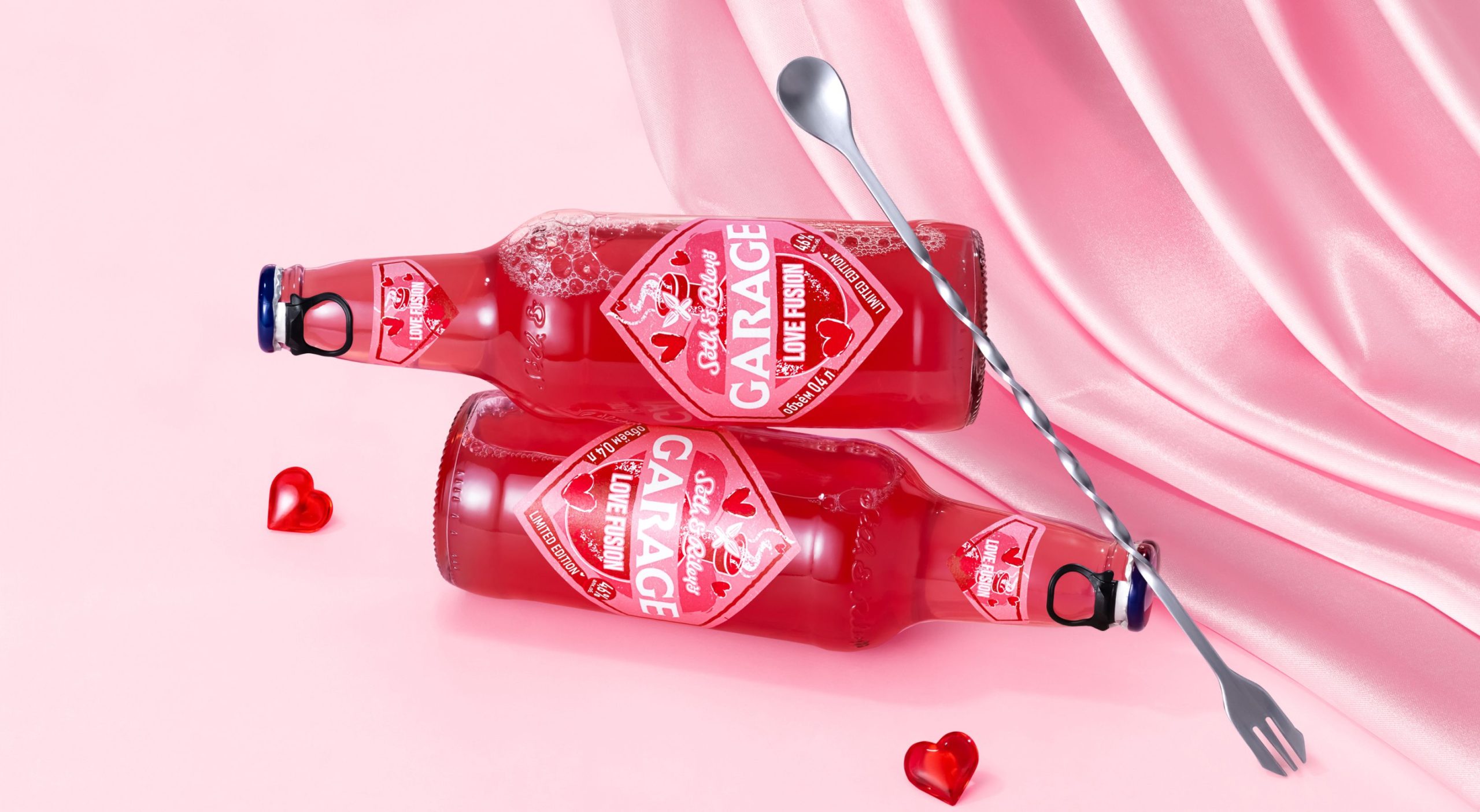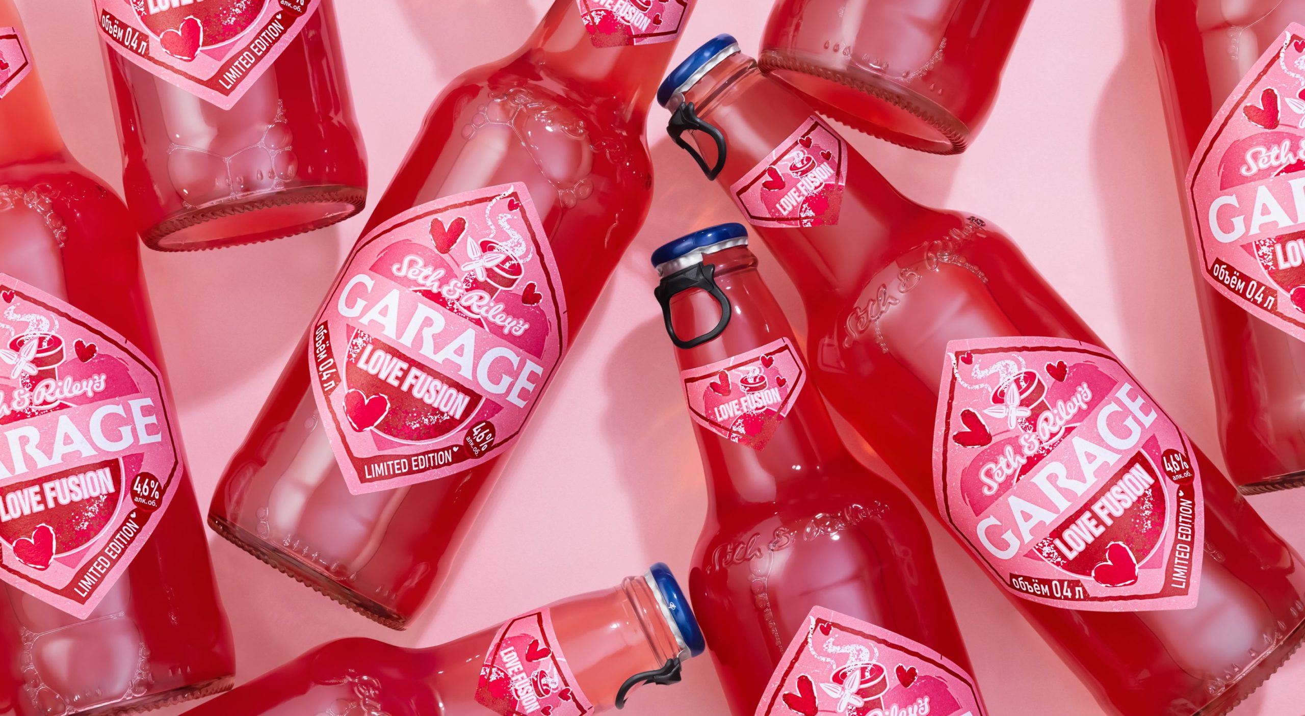 Задачей проекта было разработать дизайн лимитированного продукта в «коктейльной» серии ко Дню всех влюблённых — Love Fusion, сохранив ДНК бренда и при этом передав более эмоциональное, романтичное настроение. Важно было избежать банальной «валентинской» эстетики и создать образ, который чувствуется как часть Garage-мира: смелый, немного дерзкий, но искренний.