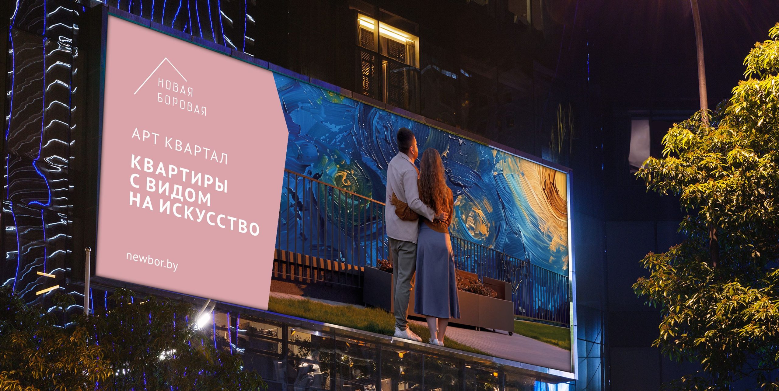 Для промо в социальных сетях мы разработали сценарий AR-видео, в котором небо над Новой Боровой превратилось в «Звездную ночь». В digital аудиторию поджидали баннеры, в которых известные художники намекали на скорый старт продаж квартир в АРТ КВАРТАЛЕ.
