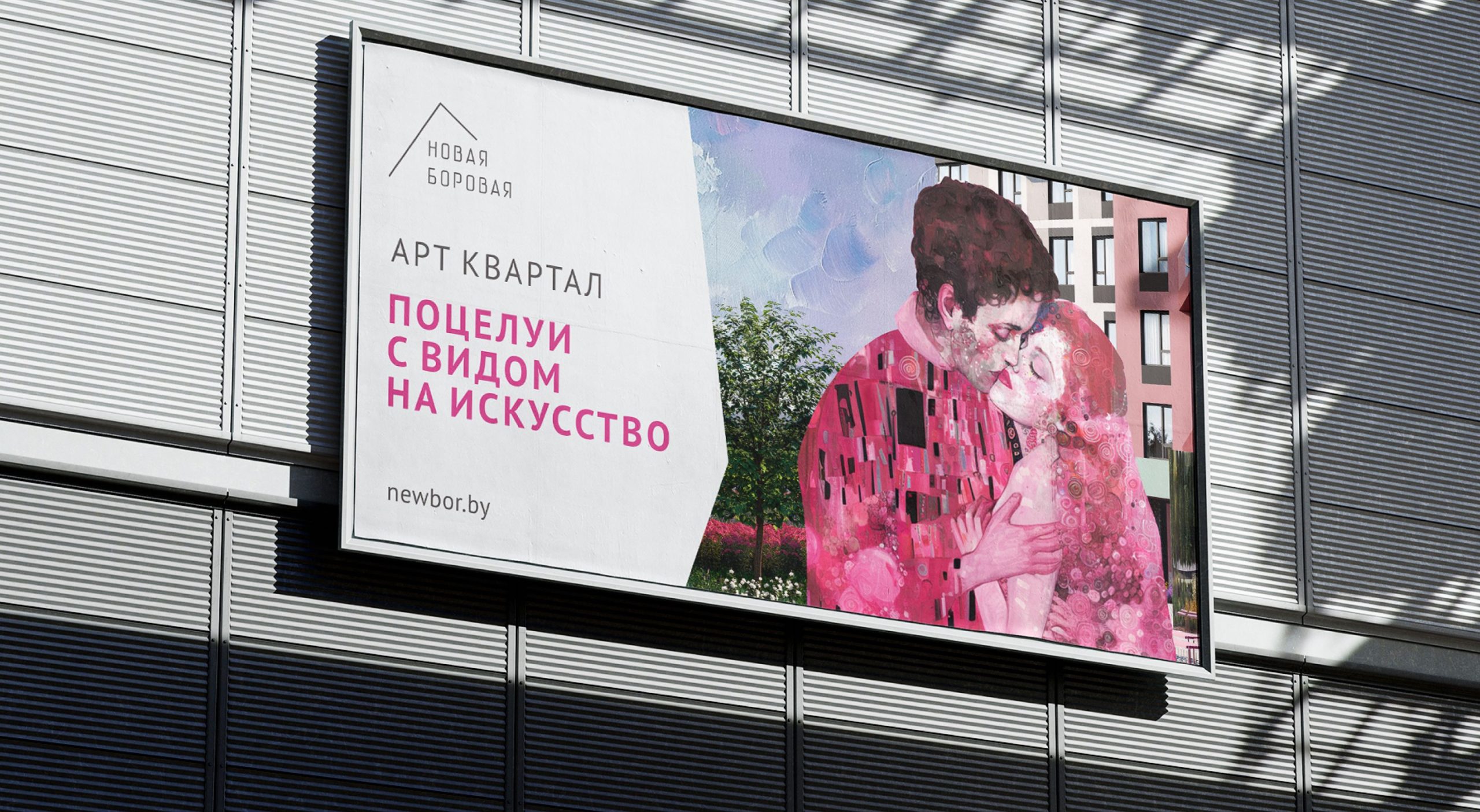 Вторая волна рекламной кампании продолжила и развила идею, продемонстрировав реальный экстерьер домов АРТ КВАРТАЛА. Так возле одного из домов нового квартала появилась влюбленная пара, вдохновленная полотном Густава Климта «Поцелуй». Ведь если вы живете с видом на искусство, то и ваши завтраки, и каждый поцелуй будут происходить на фоне этого прекрасного вида.